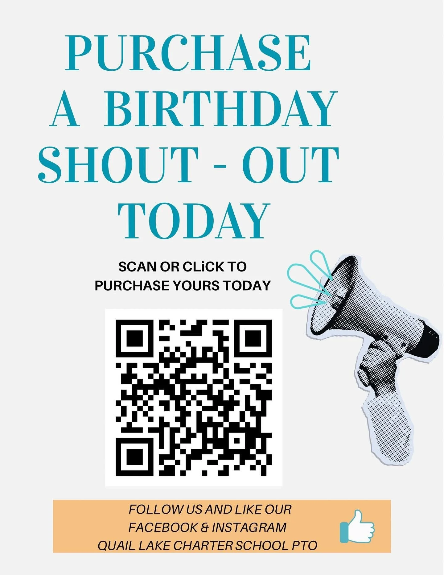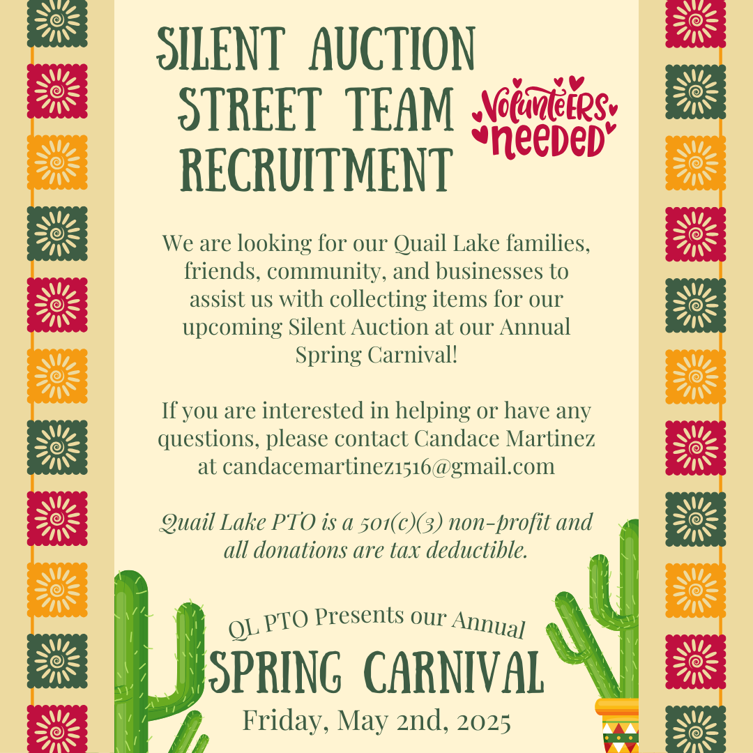 Make your child feel special and let all of our Quail Lake community, staff, students, and families know it’s their birthday by announcing it on the school marquee!!